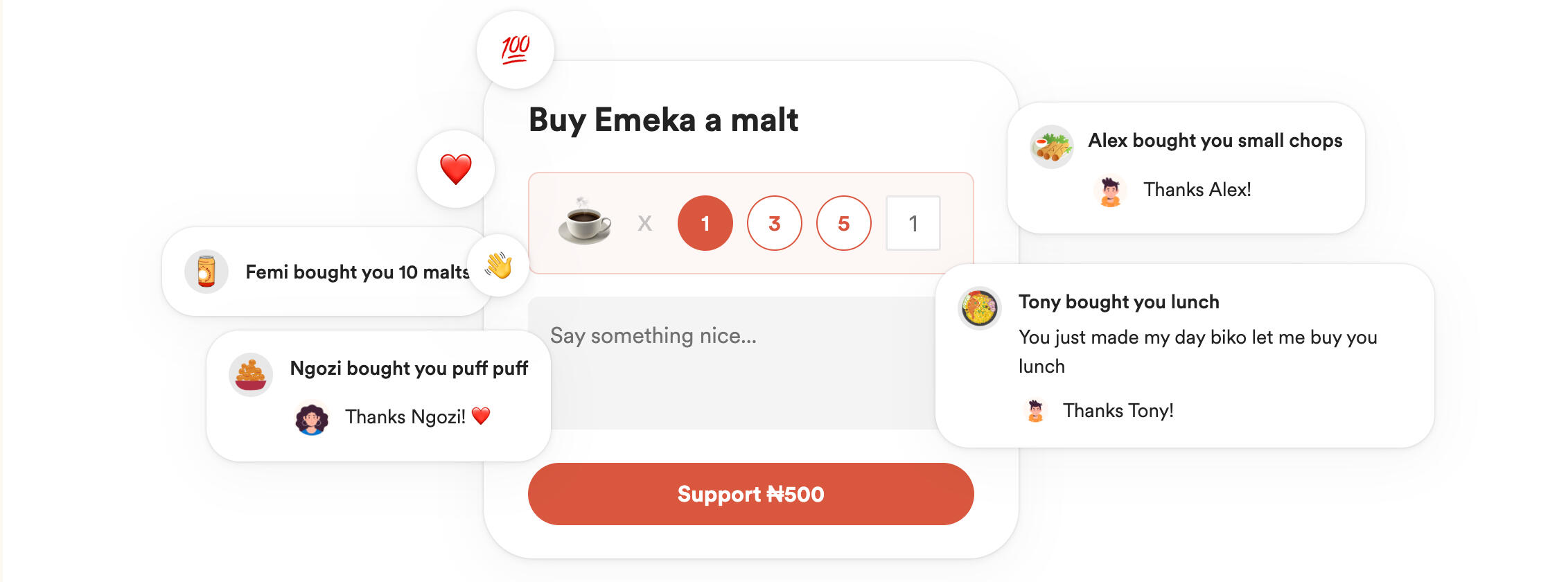 In just a couple of taps, your fans can purchase fun gifts like drinks, small chops or meals and leave a fun message for you.
